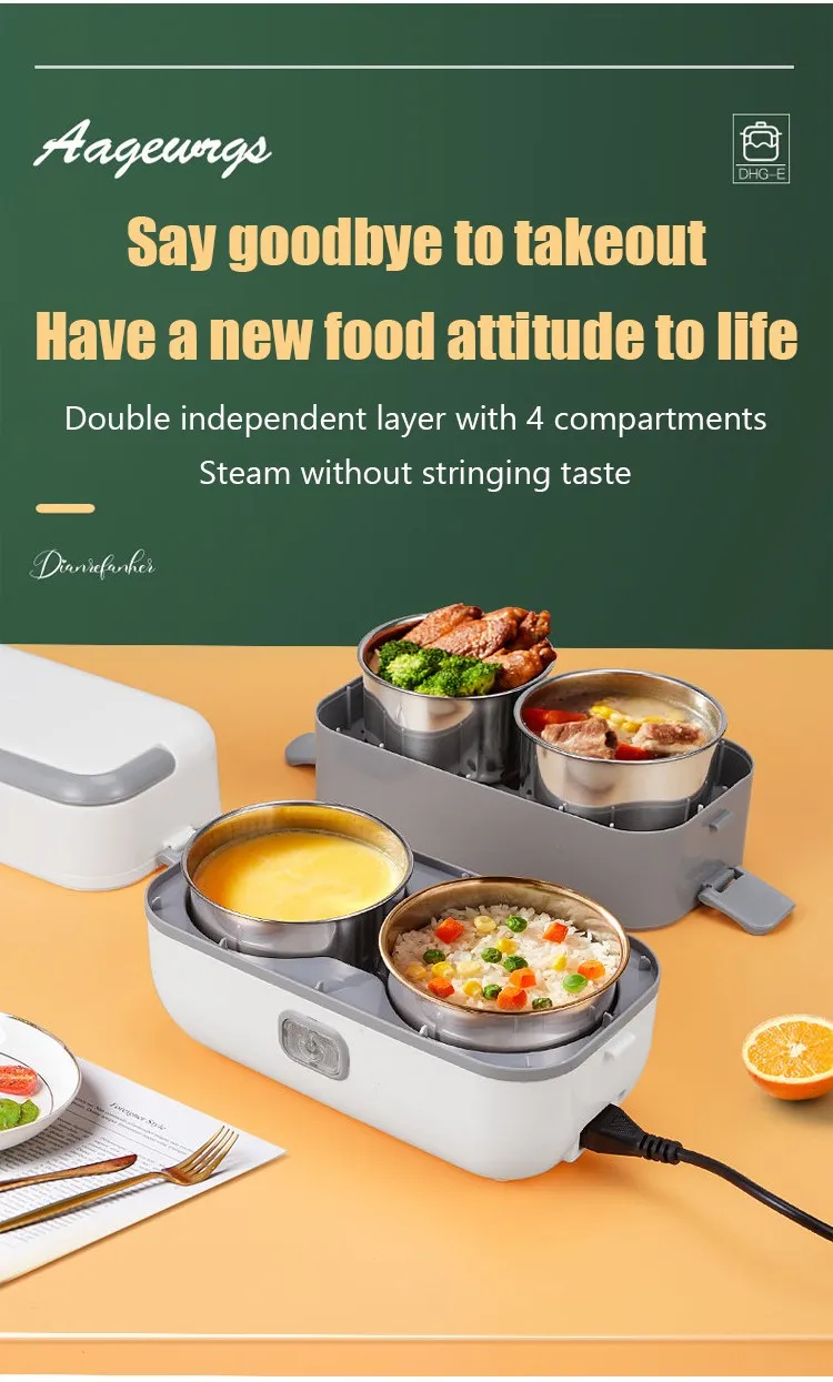 the 4-in-1 Electric Lunch Box is your wallet’s new best friend. Ditch the expensive restaurant bills and say goodbye to unhealthy street food worries. Cook your own delicious meals at home, portion them perfectly, and enjoy them hot and fresh throughout your day. It’s like having a pocket-sized kitchen that saves you money and keeps you nourished.